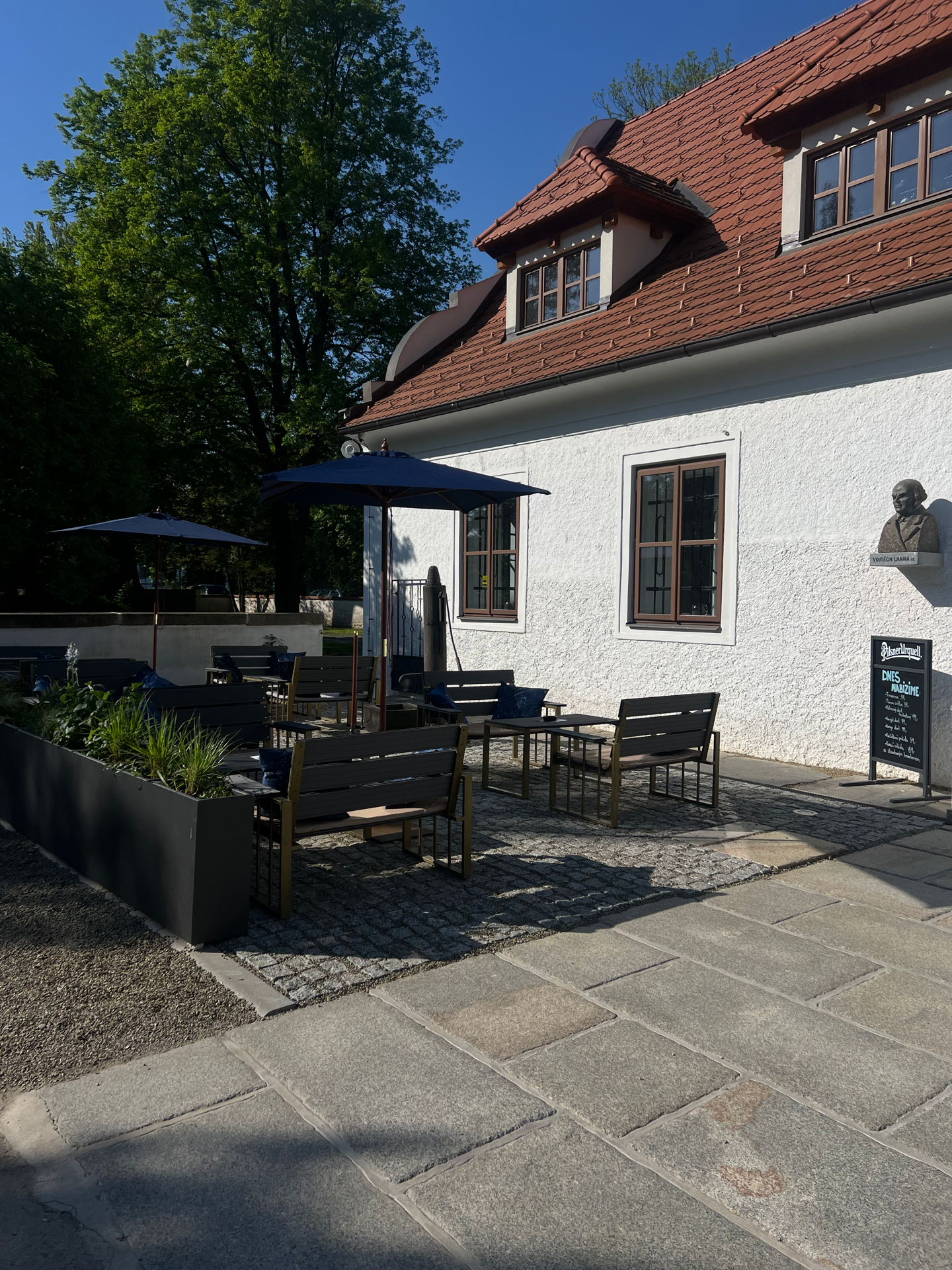 Naše venkovní terasa nabízí klidné místo k posezení, obklopené zelení a s výhledem na řeku. Je to prostor, kde se můžete na chvíli zastavit, vydechnout a užít si příjemnou atmosféru mimo městský ruch. Ideální pro ranní kávu, oběd s přáteli i večerní sklenku ve dvou.